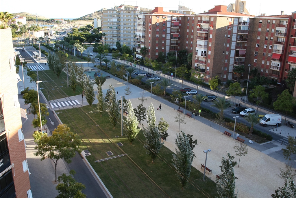 Con motivo de la construcción de la línea 2 del TRAM que unía el centro de la ciudad de Alicante con la universidad, hubo que rediseñar el tramo urbano correspondiente al conocido como Bulevar del Pla.